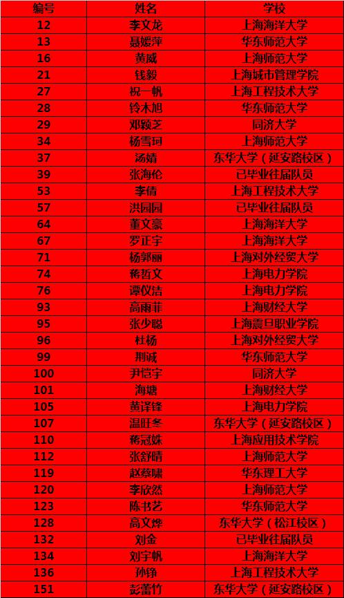 *名单先后顺序与名次无关,按照考核当日抽中号码牌排序